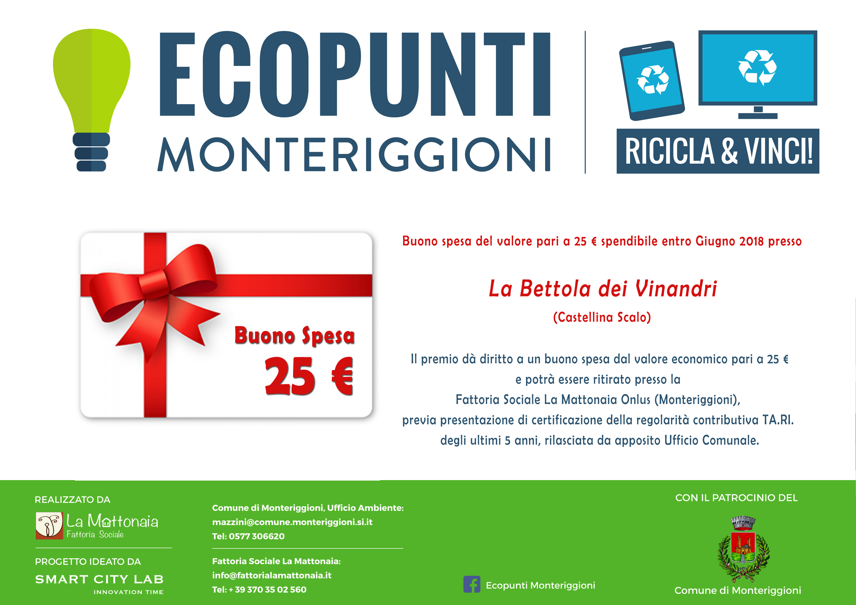 E' in programma per lunedì 23 ottobre alle ore 18.00, presso il Circolo Arci di Castellina Scalo, l'estrazione e la premiazione dei cittadini di Monteriggioni che hanno partecipato all'iniziativa EcoPunti.