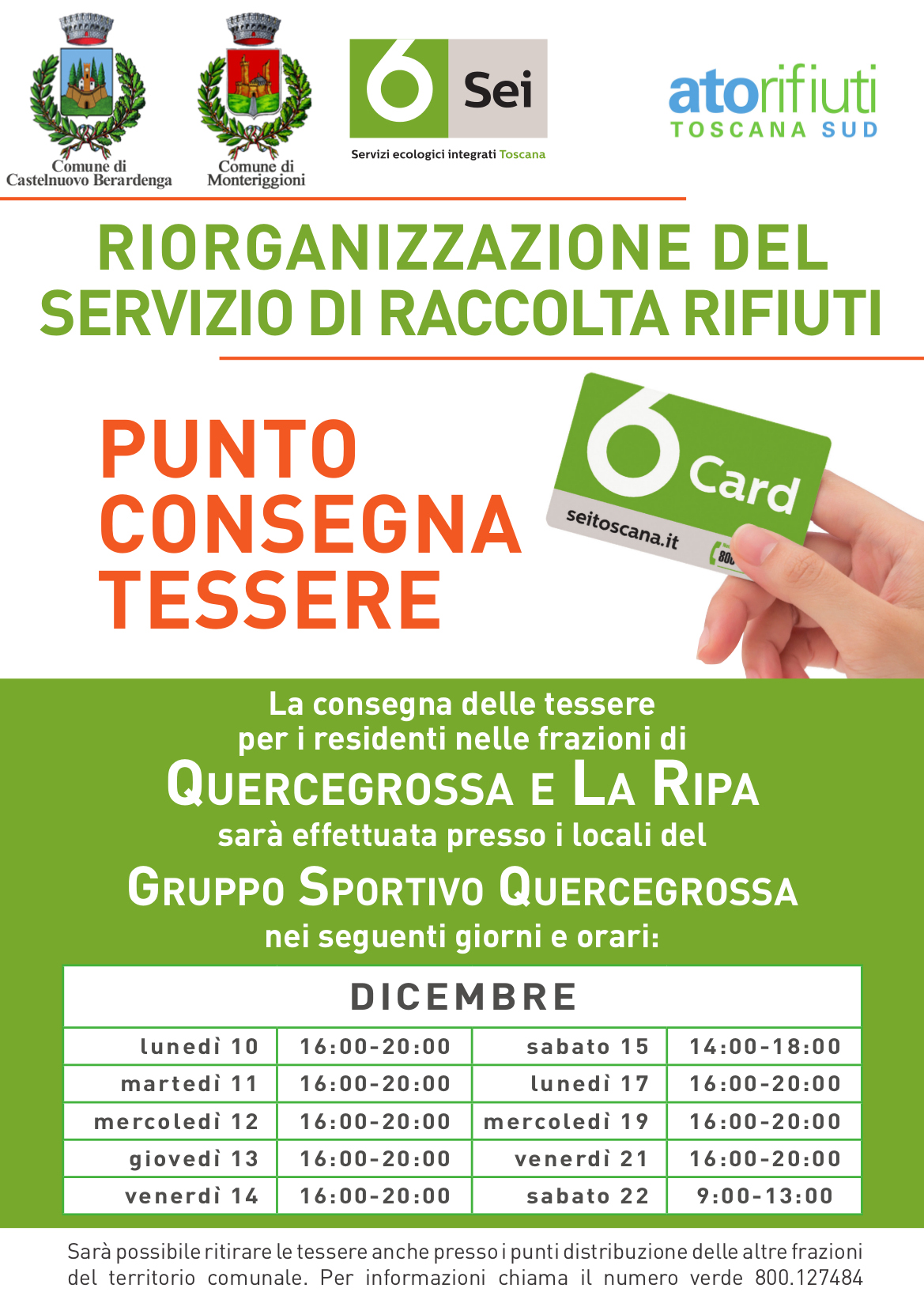 SI COMUNICA CHE PRESSO IL GRUPPO SPORTIVO DI QUERCEGROSSA, E' ATTIVO UN PUNTO DI CONSEGNA DELLE TESSERE "SEI CARD", NEI