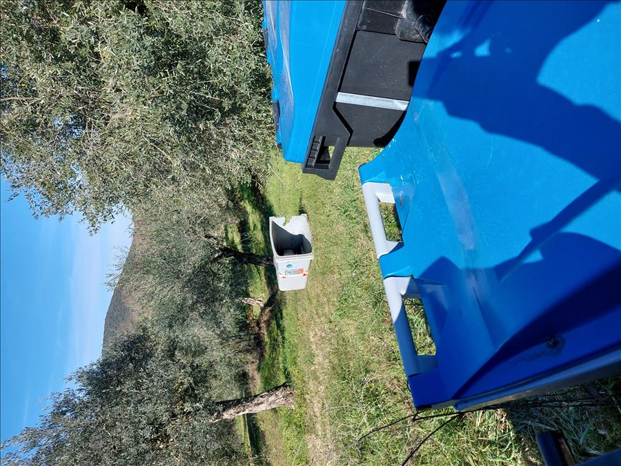 Operatore ecologico dopo aver svuotato i bidoni alle ore 12.50 su strada della villa, lancia uno di questi nel campo come da foto allegata.
