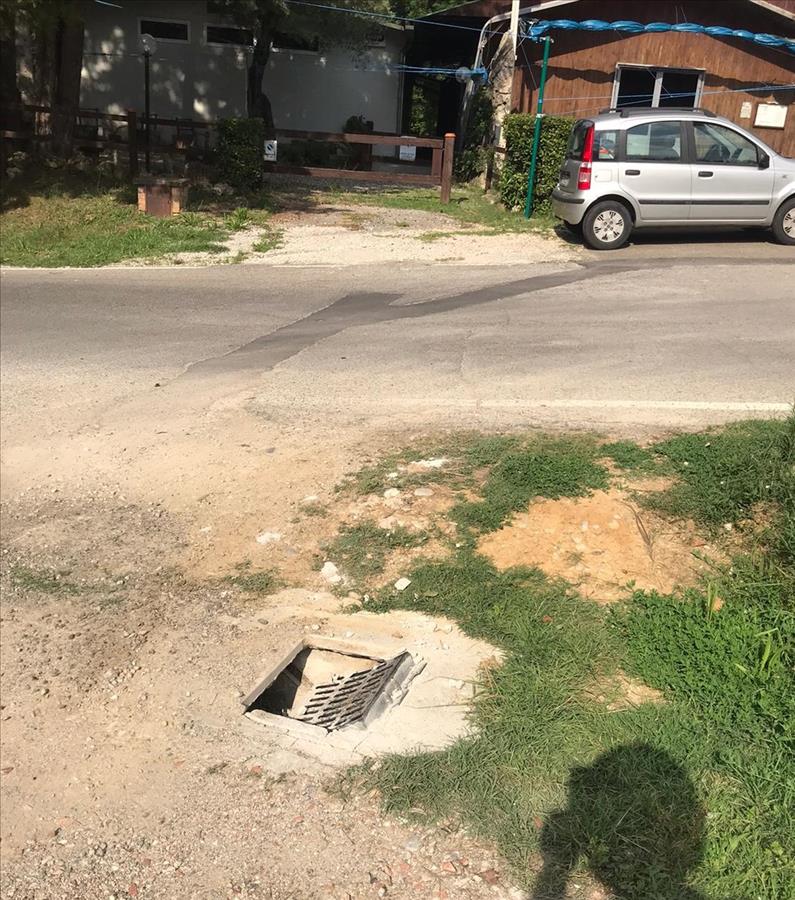 E' franata la grata della fognatura nel piazzale antistante la casetta dell'acqua di Belverde, davanti alla chiesa. L'affossamento è piuttosto pericoloso.