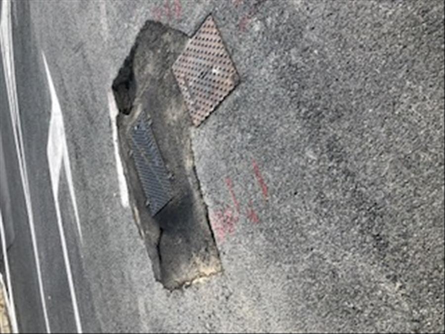 l'asfalto intorno al tombino che è stato rifatto pochi giorni fa davanti alla scuola a San Martino ha ceduto con pericolosi avvallamenti