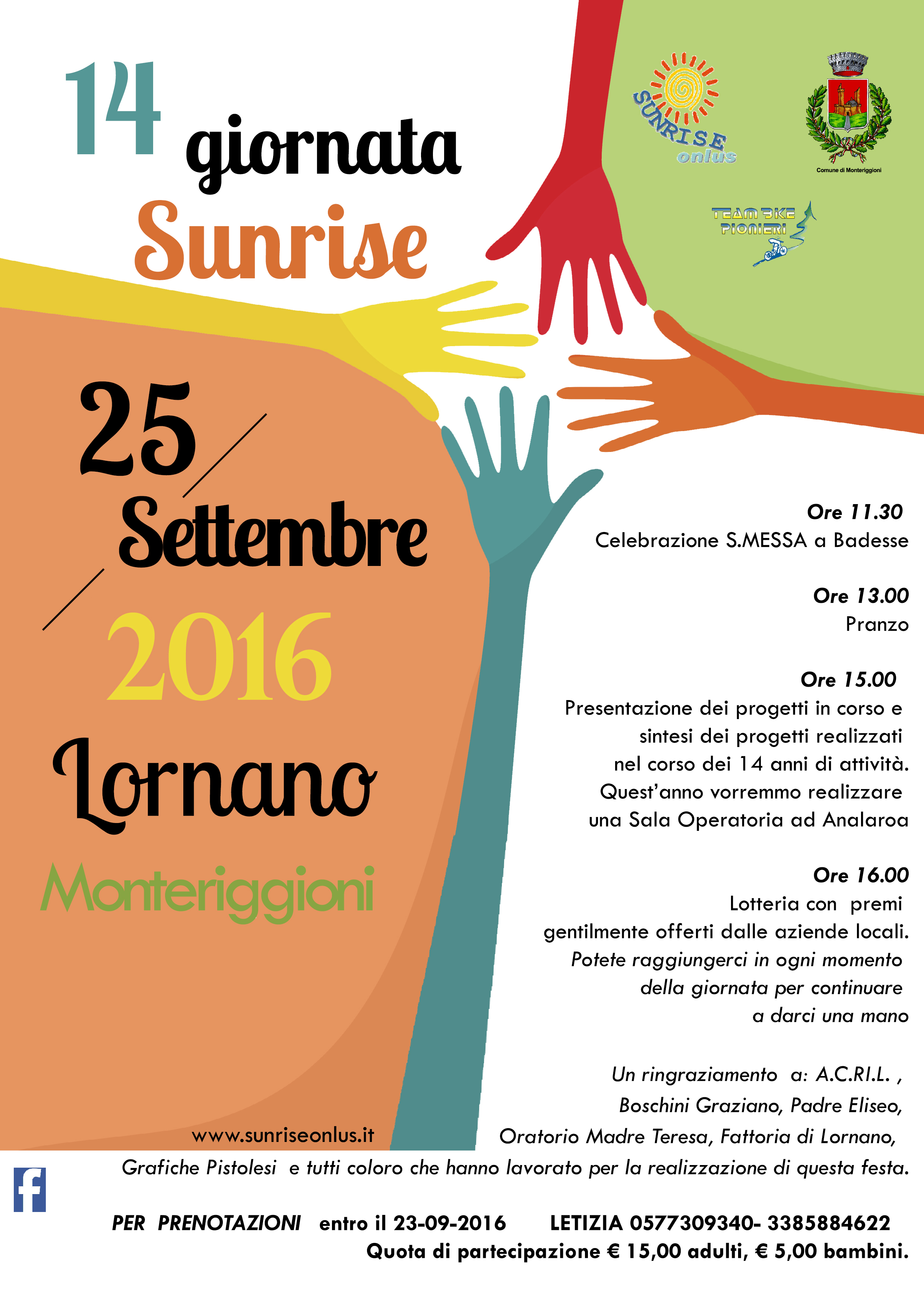 Il 25 settembre, presso la frazione di Lornano, si svolgerà la 14° Giornata Sunrise.