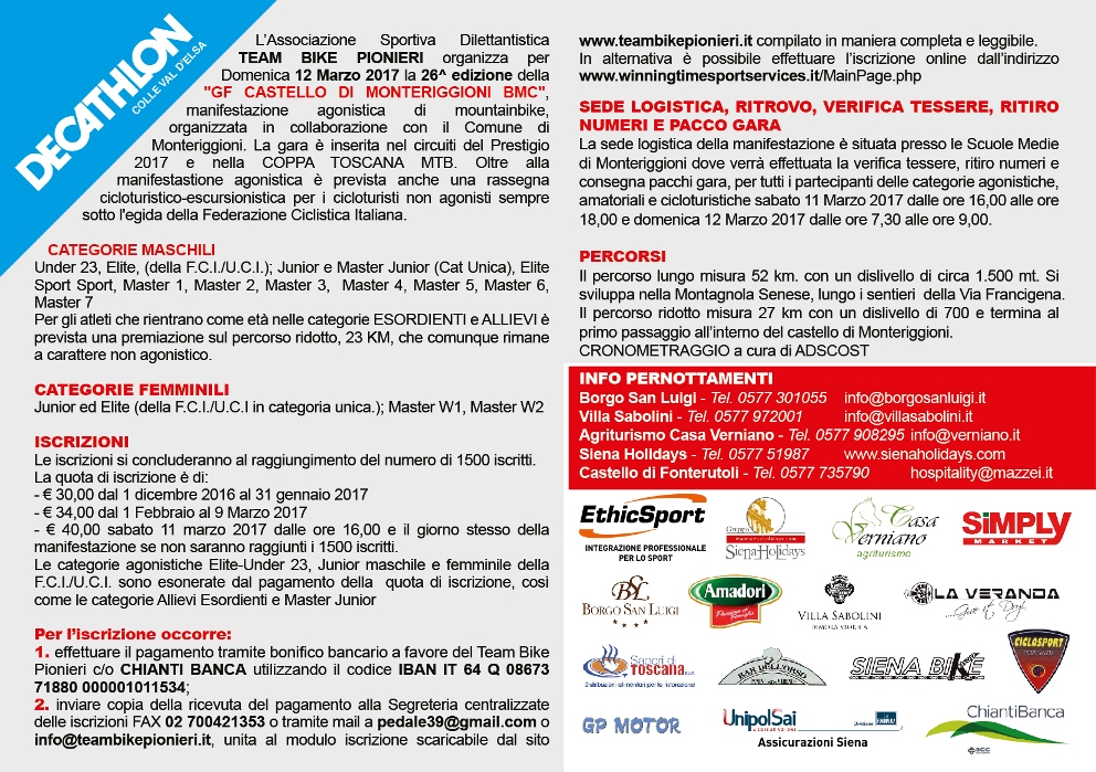 Info e dettagli in allegato e su www.teambikepionieri.it.