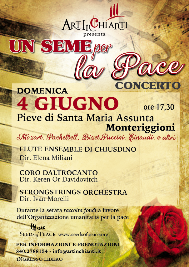 Domenica 4 giugno alle 17,30 presso la Pieve di Santa Maria Assunta (Monteriggioni Castello) Artinchianti presenta il concerto "Un seme per la pace".