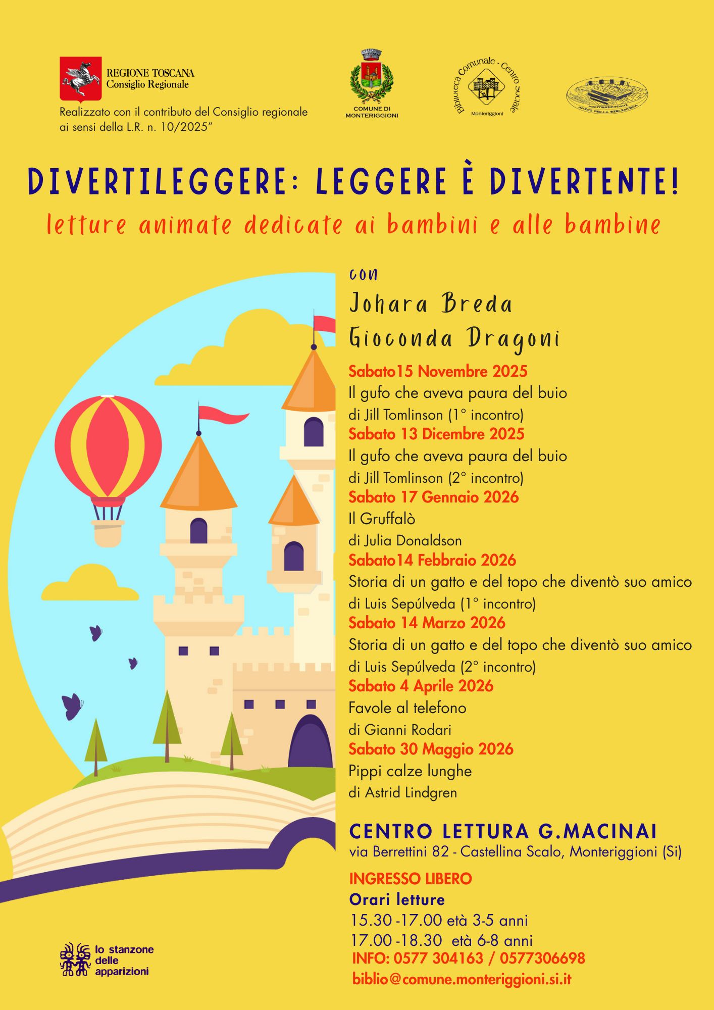 Sabato 4 aprile presso il Centro Lettura in Via Berrettini 82 a Castellina Scalo ci sarà un altro incontro della rassegna di letture animate "Divertileggere: leggere è divertente!".