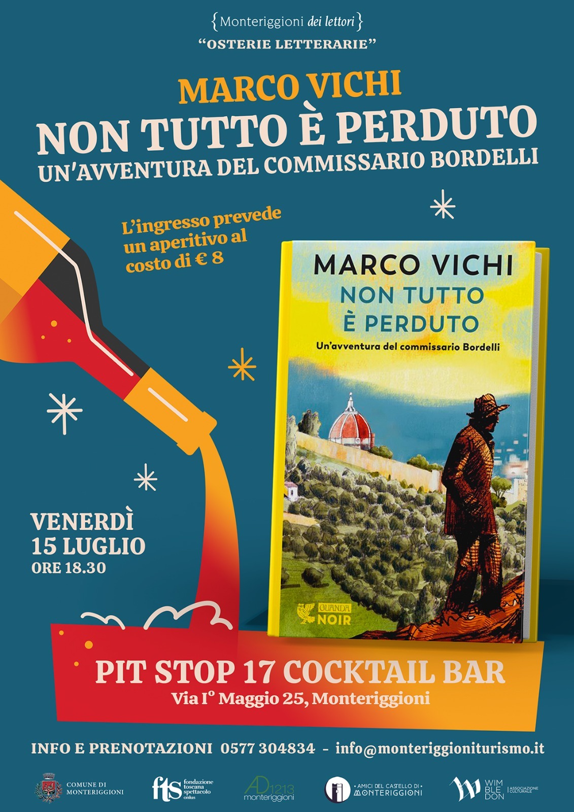 Venerdì 15 luglio, a partire dalle 18,00 in piazza I maggio al Castello di Monteriggioni (SI), si terrà una doppia Osteria Letteraria con il grande autore Marco Vichi.