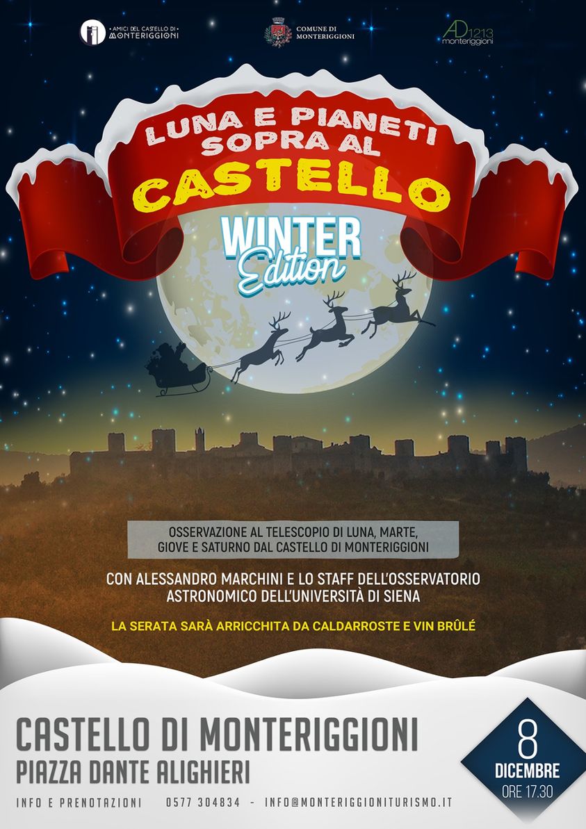 L'Associazione Amici del Castello, Comune di Monteriggioni e Monteriggioni AD 1213 vi invitano l'8 dicembre al Castello, in Piazza Dante Alighieri, a partire dalle 17,30 per l'accensione dell'albero di Natale e per l'evento