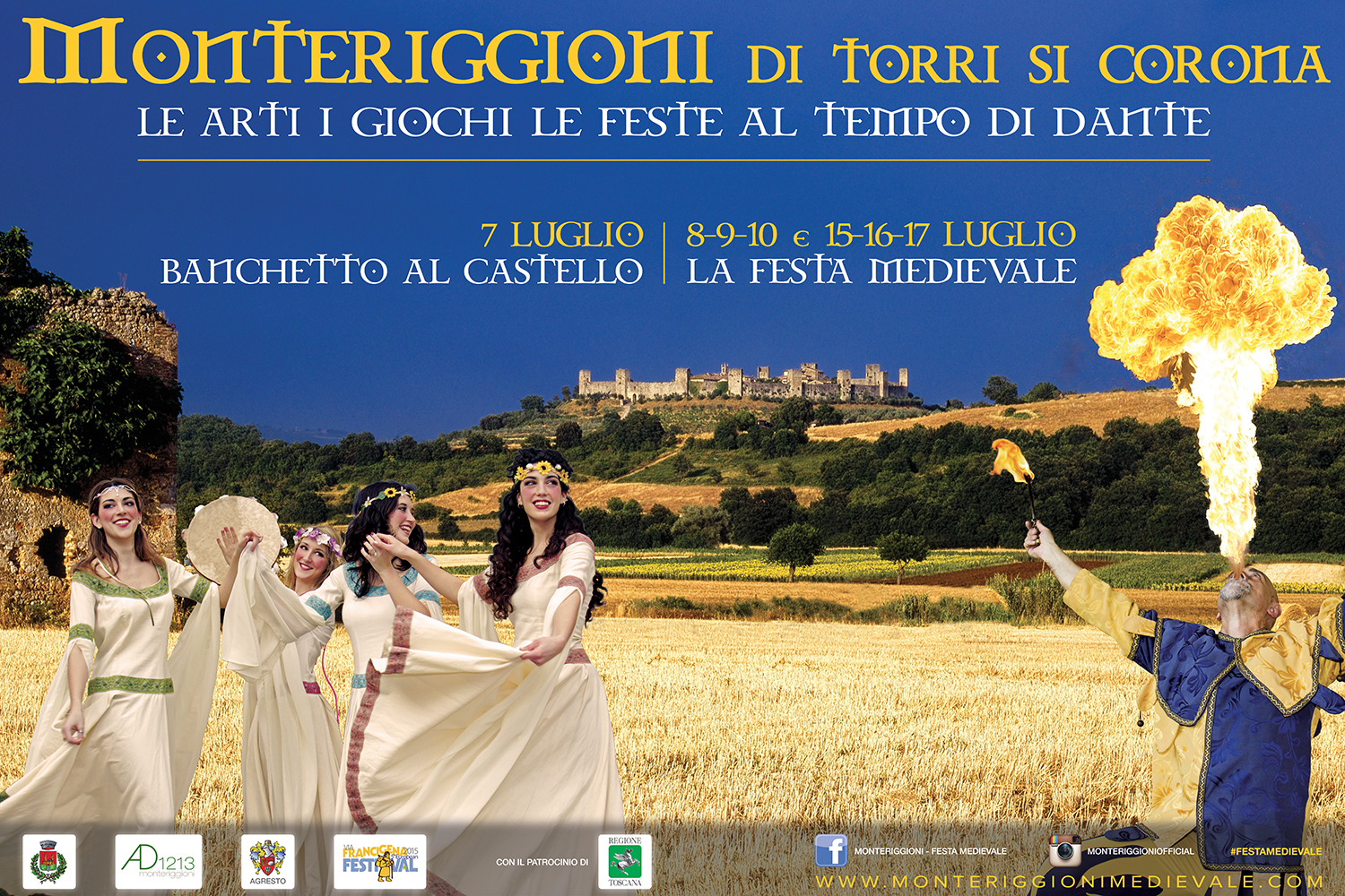 La XXVI edizione della festa medievale di Monteriggioni si svolgerà nei giorni 7 luglio (Banchetto al Castello), 8-9-10 e 15-16-17 Luglio 2016 (Festa Medievale).