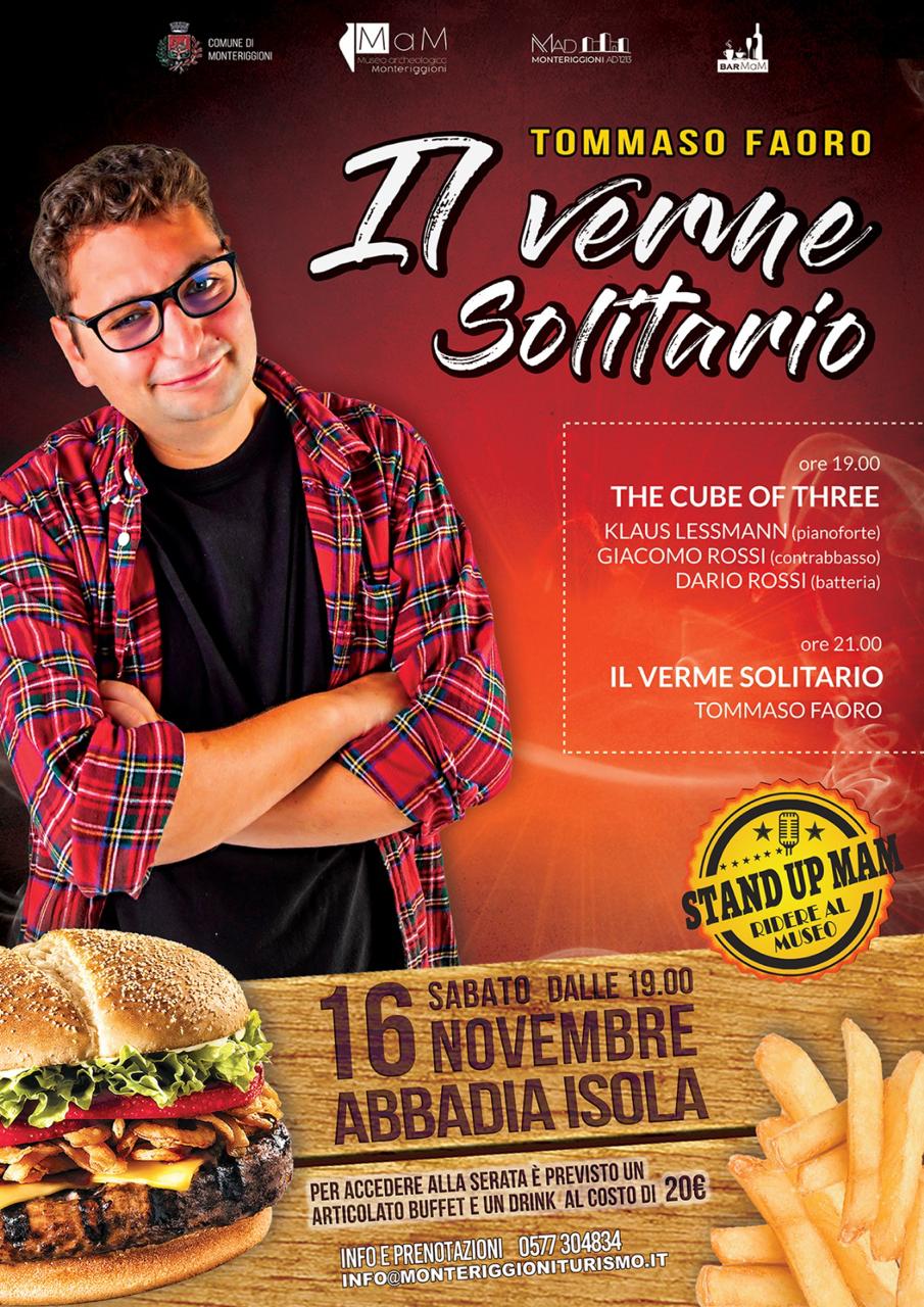 Un nuovo appuntamento speciale, ancora all'insegna della musica, del buon cibo e dell'umorismo che, ospitato negli spazi del BarMaM, offre una serie di eventi imperdibili e una vera e propria esperienza multisensoriale. Per accedere alla serata è previsto un articolato buffet e drink d'accoglienza inclusi nel costo di 20€, con la possibilità di gustare una selezione di pietanze locali, oltre a una serie di spettacoli unici e avvincenti per il territorio senese.