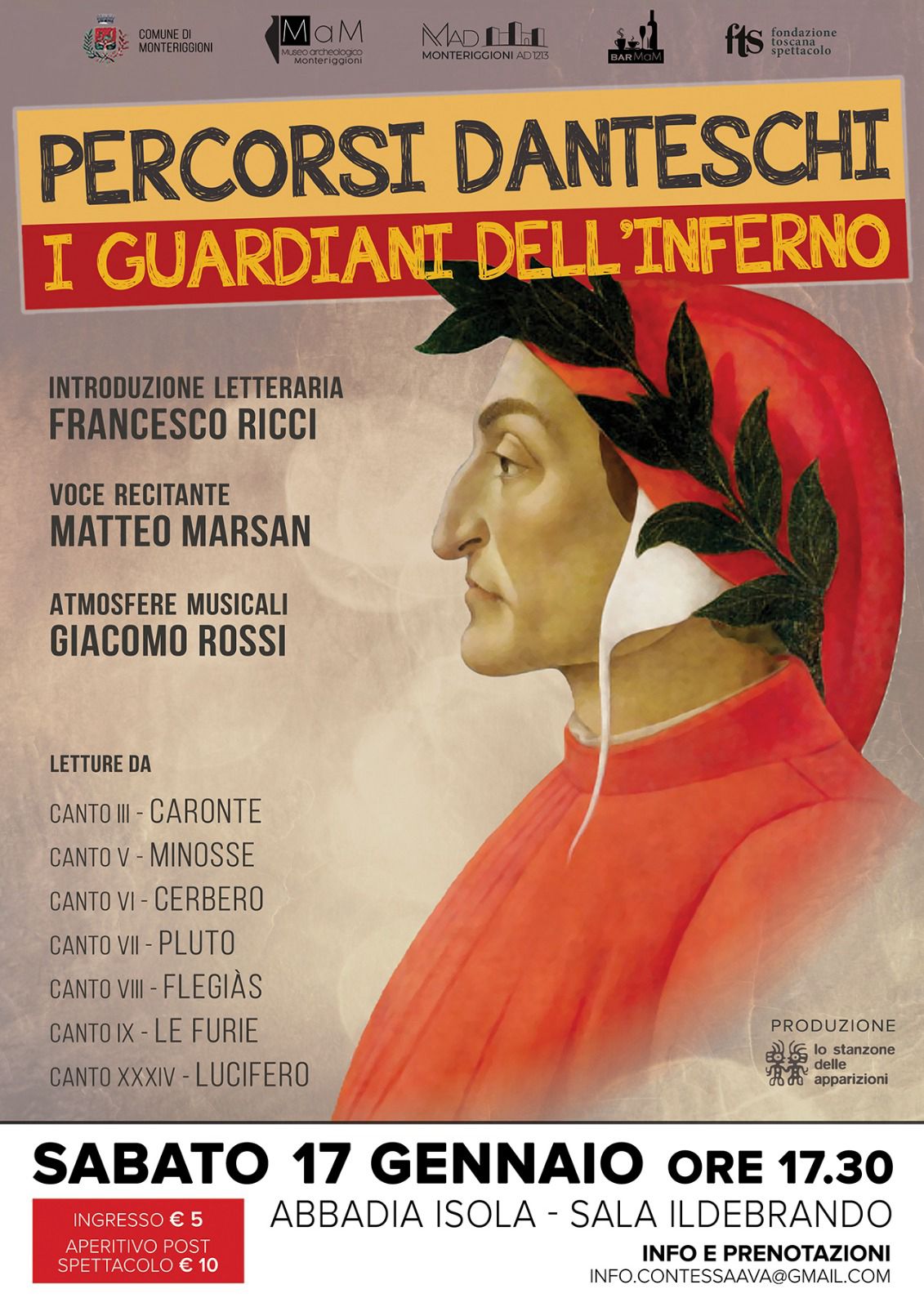 Condurranno il pubblico nel cuore dell’Inferno dantesco, dove non ci sono solo dannati e pene eterne, ma anche guardiani, figure potentissime che sbarrano il passo a Dante e Virgilio e trasformano ogni incontro in una sfida, in un passaggio iniziatico.
