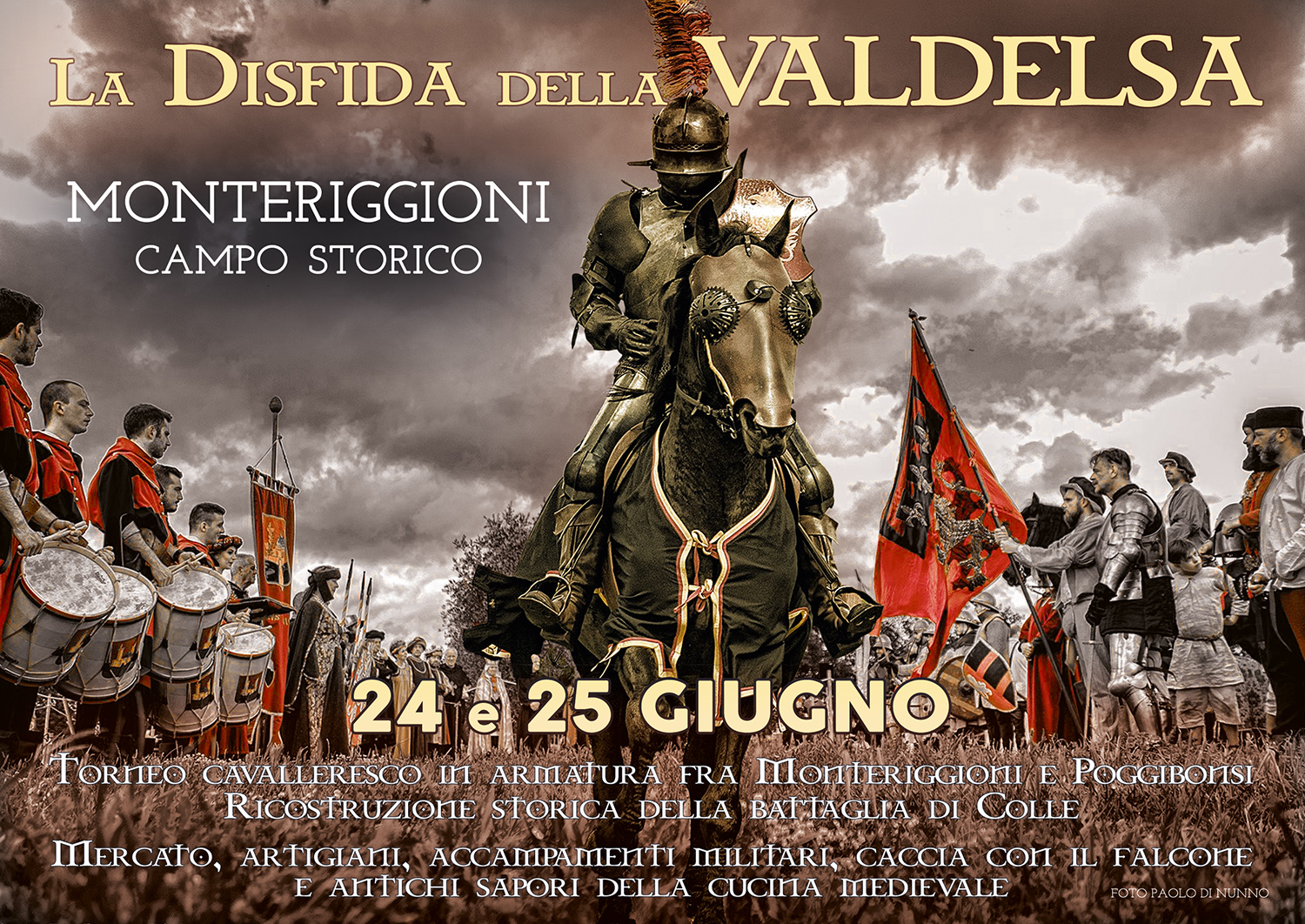 Nelle due giornate: torneo cavalleresco in armatura fra Monteriggioni e Poggibonsi, ricostruzione storica della battaglia di Colle, mercato, artigiani, accampamenti militari, caccia con il falcone e antichi sapori della cucina medievale.