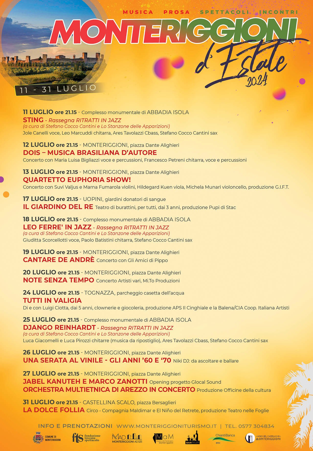 È possibile scoprire il cartellone estivo del Comune di Monteriggioni sul sito https://www.monteriggioniturismo.it/it/