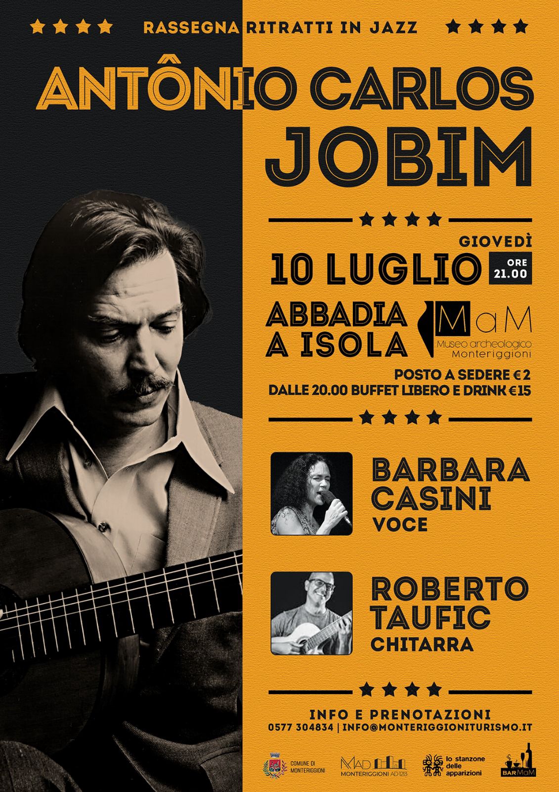 Per “Ritratti in Jazz” rassegna giunta al secondo ciclo e curata da Stefano Cocco Cantini, giovedì 10 luglio, ore 21:00, Abbadia Isola ospiterà “Antônio Carlos Jobim” con la celebre interprete italiana di musica brasiliana Barbara Casini e lo straordinario chitarrista Roberto Taufic. È l’omaggio al grande e poliedrico musicista brasiliano considerato uno dei padri della bossa nova, che ha influenzato la musica del XX secolo fondendo armonie sofisticate del jazz con il ritmo della samba brasiliana.