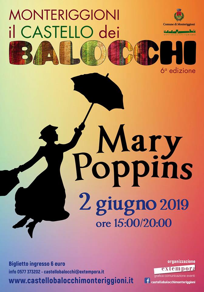 Domenica 2 giugno 2019, dalle 15 alle 20, ritorna per il sesto anno MONTERIGGIONI-IL CASTELLO DEI BALOCCHI con la fantastica storia di "Mary Poppins".