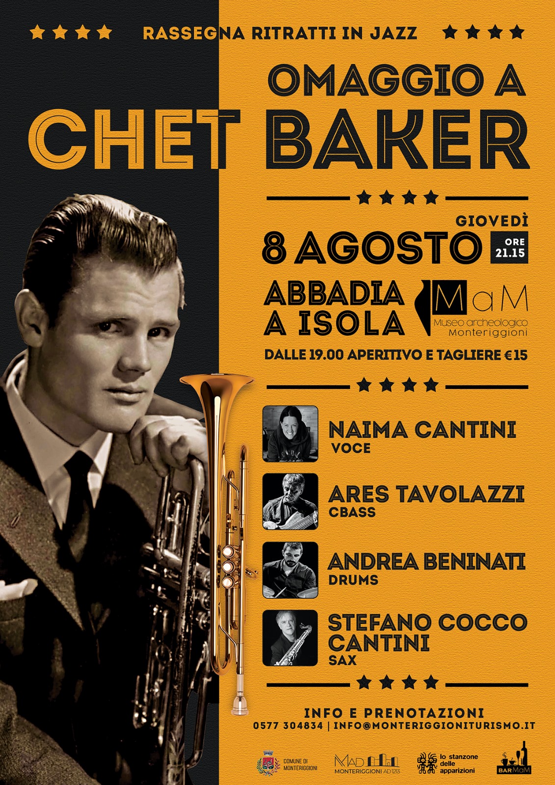 Giovedì 8 agosto, ore 21:15, ad Abbadia Isola-MaM: Museo archeologico di Monteriggioni, torna l’applauditissima rassegna “Ritratti in jazz” nel chiostro dell’Abbazia.