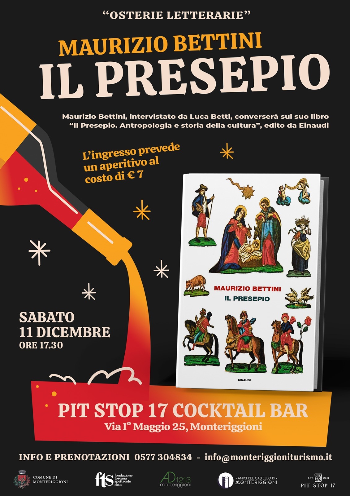 L'11 dicembre al Castello di Monteriggioni,presso il Pit stop 17: fine drinks, Teas, Craft Beers, Champagne, alle ore 17,30 si terrà l'“Osteria Letteraria”.