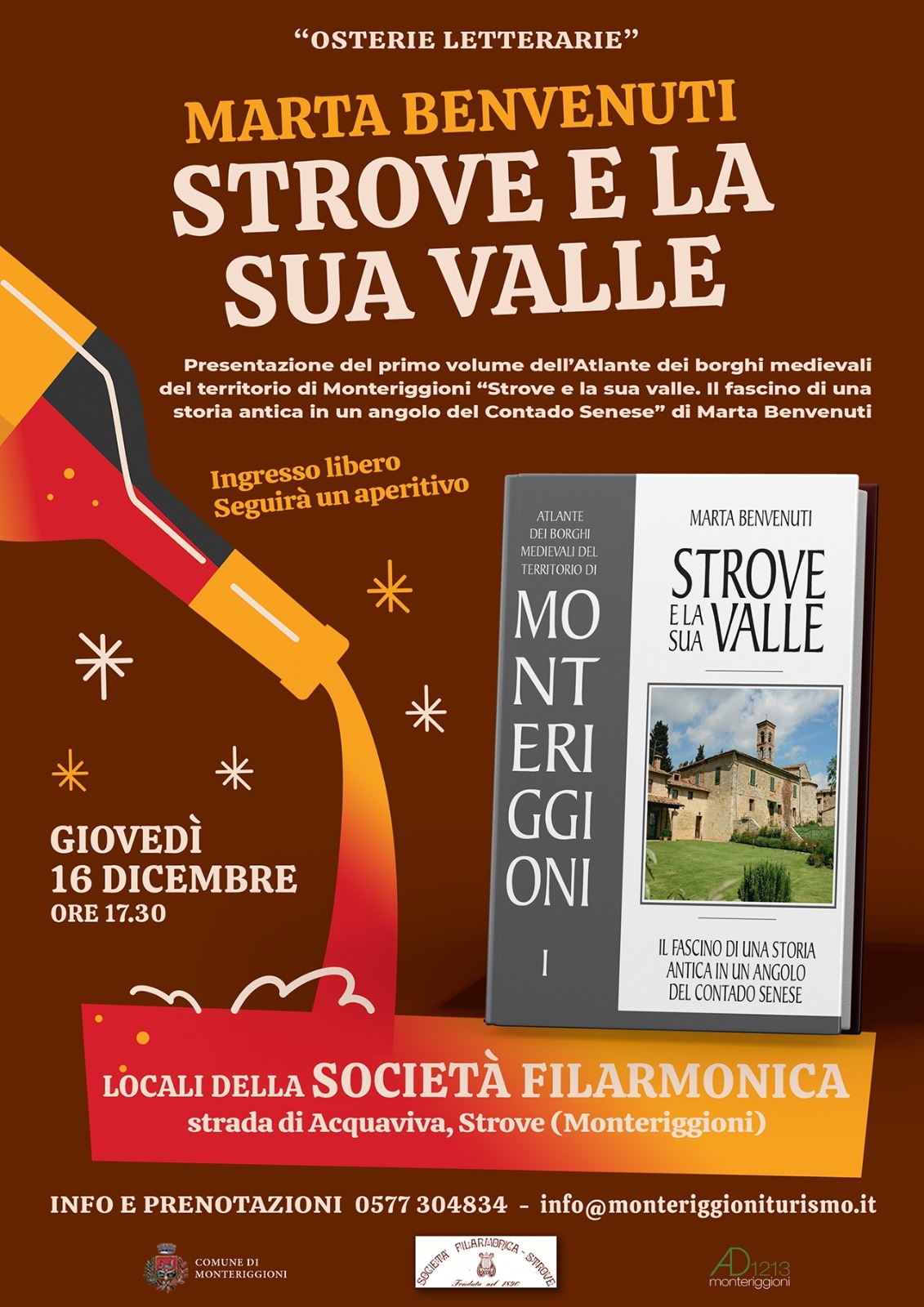 Nell'ambito delle "Osterie letterarie" promosse dal comune di Monteriggioni, giovedì 16 dicembre alle 17,30 presso i locali della Filarmonica di Strove (strada dell'Acquaviva, loc. Strove Monteriggioni-SI), si terrà la presentazione del libro