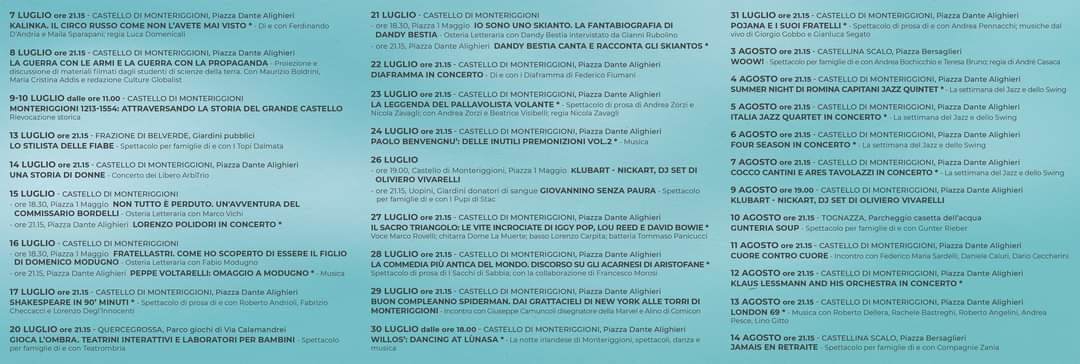 L’evento fa parte del cartellone eventi estivi promossi dal Comune di Monteriggioni, in collaborazione con Fondazione Toscana Spettacolo Onlus, Monteriggioni AD 1213, Associazione Amici del Castello di Monteriggioni, Associazione La Scintilla.