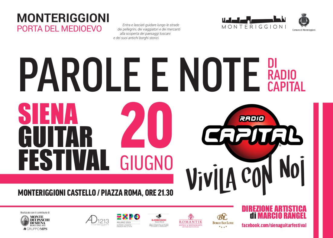 Nell’ambito di “Castle Music Fest”, il 20 giugno, “Parole Note” di Radio Capital sarà il primo dei quattro eventi organizzati dal Siena Guitar Festival nella splendida cornice del Castello di Monteriggioni.