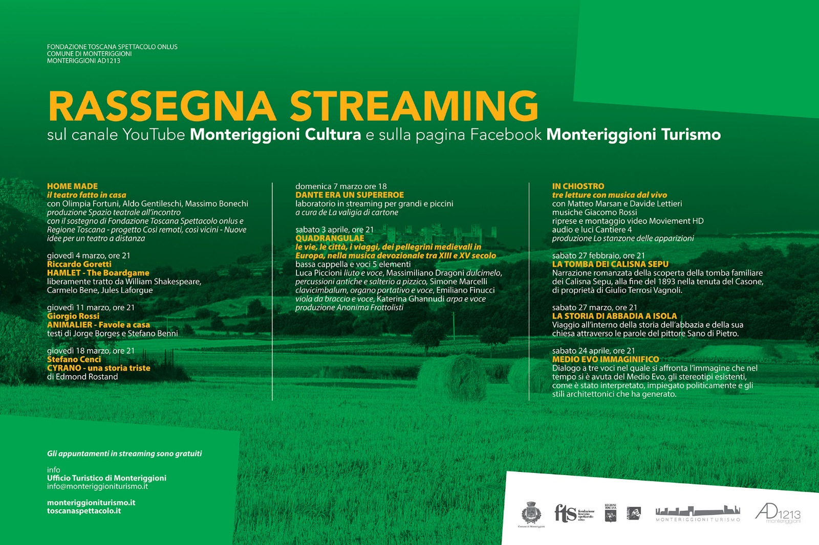 Le iniziative saranno trasmesse sul canale You Tube Monteriggioni cultura e sulla pagina Facebook Monteriggioniturismo.
