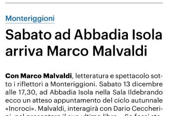 Sabato 13 dicembre, ore 17.30, ad Abbadia Isola nella Sala Ildebrando un appuntamento di grande caratura per il ciclo autunnale “Incroci”. Marco Malvaldi, interagirà con Dario Ceccherini, nel...