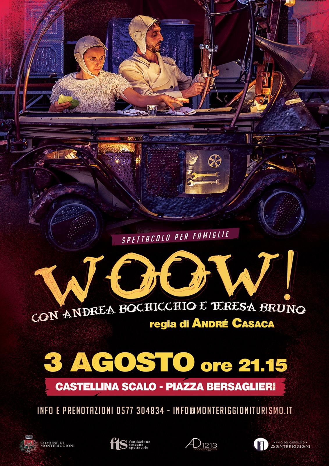 Mercoledì 3 agosto, in piazza Bersaglieri a Castellina Scalo (Monteriggioni-SI), alle ore 21.15, si terrà lo spettacolo per famiglie