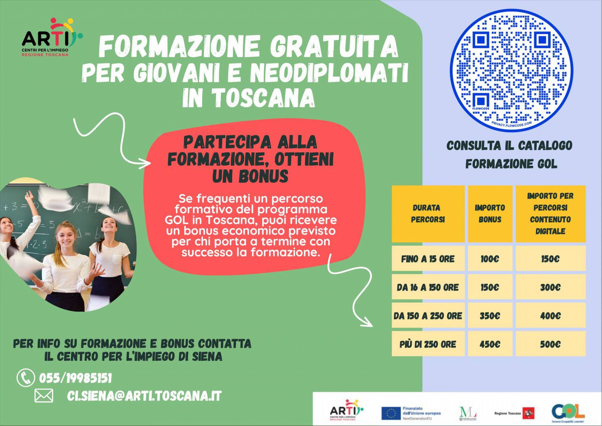 È inoltre previsto un Bonus Formazione da 100 a 500 euro, erogato dalla Regione Toscana a chi fa domanda ne possiede i requisiti e completa con successo il percorso.