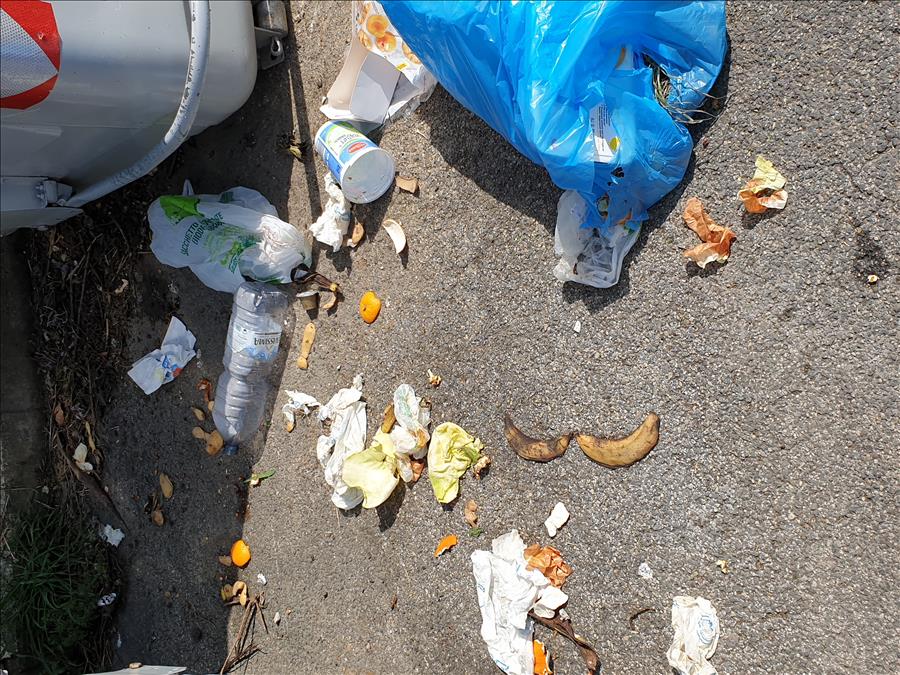 Rifiuti organici sparsi vicino cassetto umido stazione Castellina. Presenza di topi.
