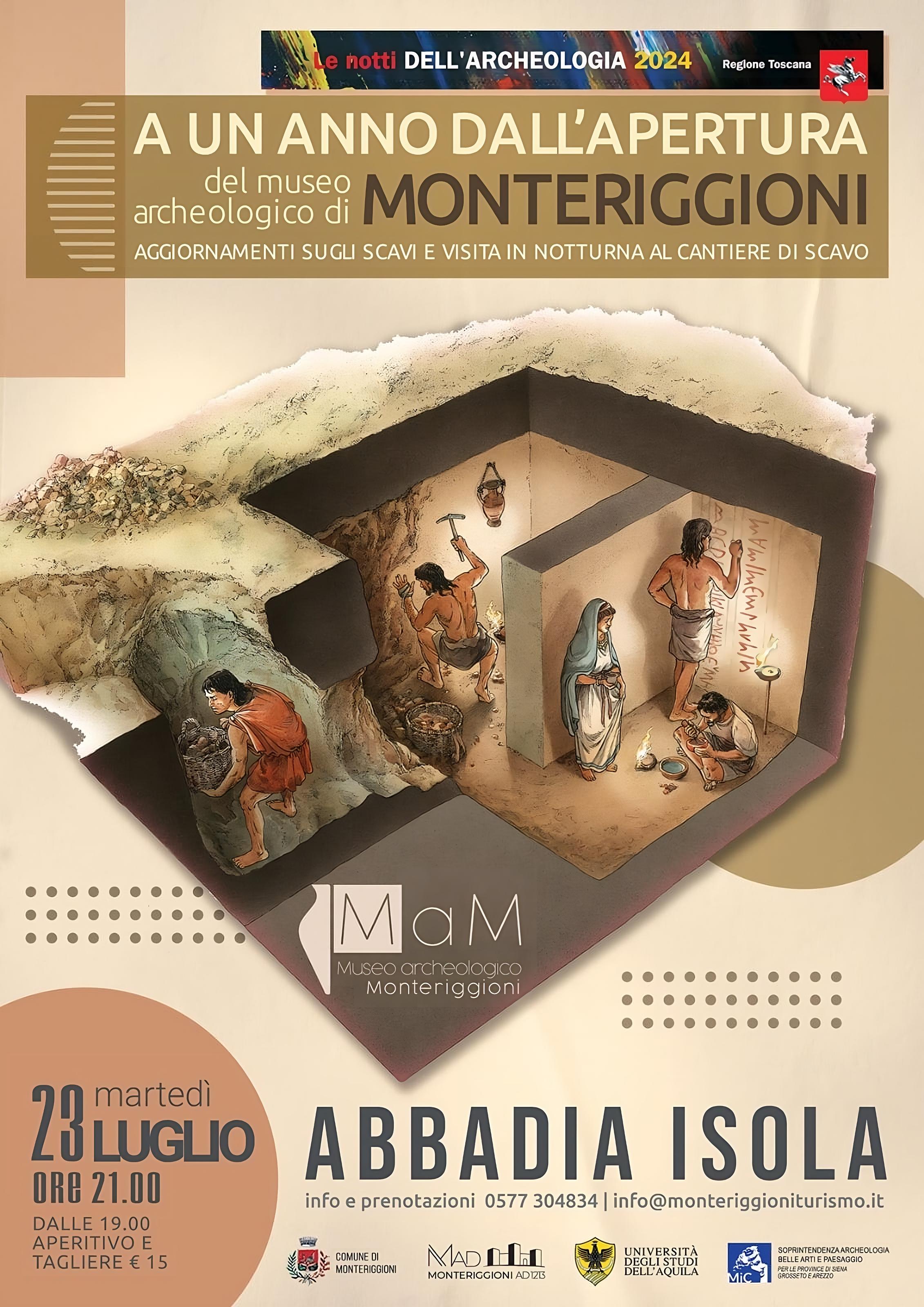L'appuntamento è pertanto al MaM, nel chiostro di Abbadia Isola, martedì 23 luglio, alle 21,00, in una serata evento (inserita nell’iniziativa regionale “Le Notti dell’Archeologia”) con aggiornamenti sulle ricerche archeologiche in corso sul territorio oltre che interessanti e inedite sorprese.