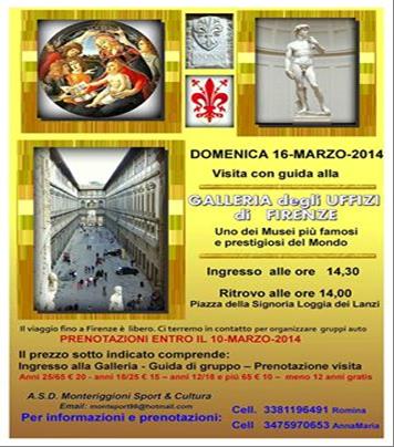 Si pubblica la brochure informativa della visita agli uffizi organizzata dall'associazione culturale Monteriggioni Sport e Cultura per il giorno 16 Marzo 2014.