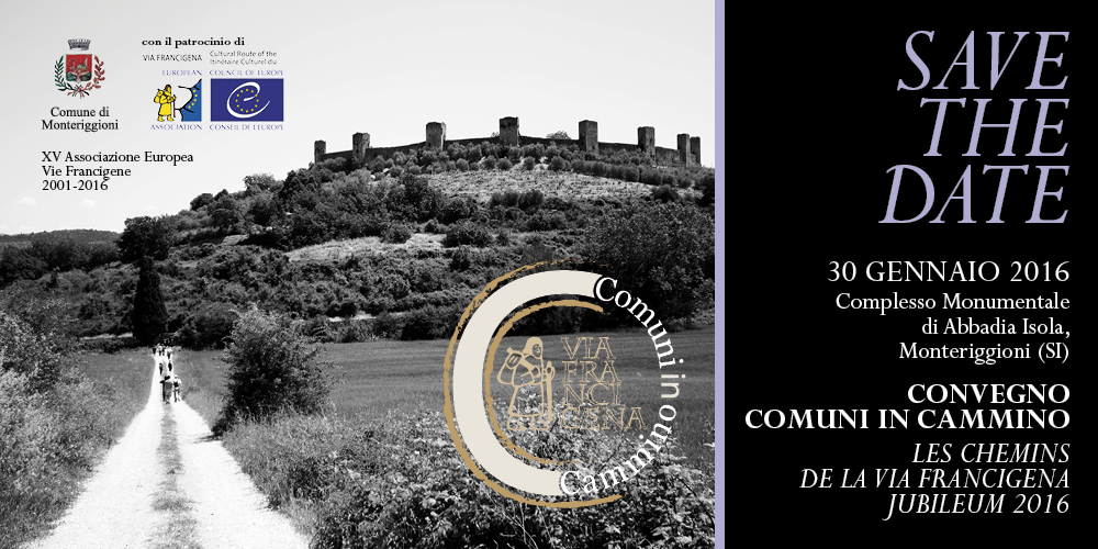 Il Comune di Monteriggioni, con il patricinio dell'Associazione Europea delle Vie Francigene, organizza il Convegno "Comuni in Cammino"-Les chemins de la Via Francigena – Jubileum 2016". l convegno si terrà presso il complesso monumentale di Abbadia Isola (Monteriggioni-SI). Programma in allegato
