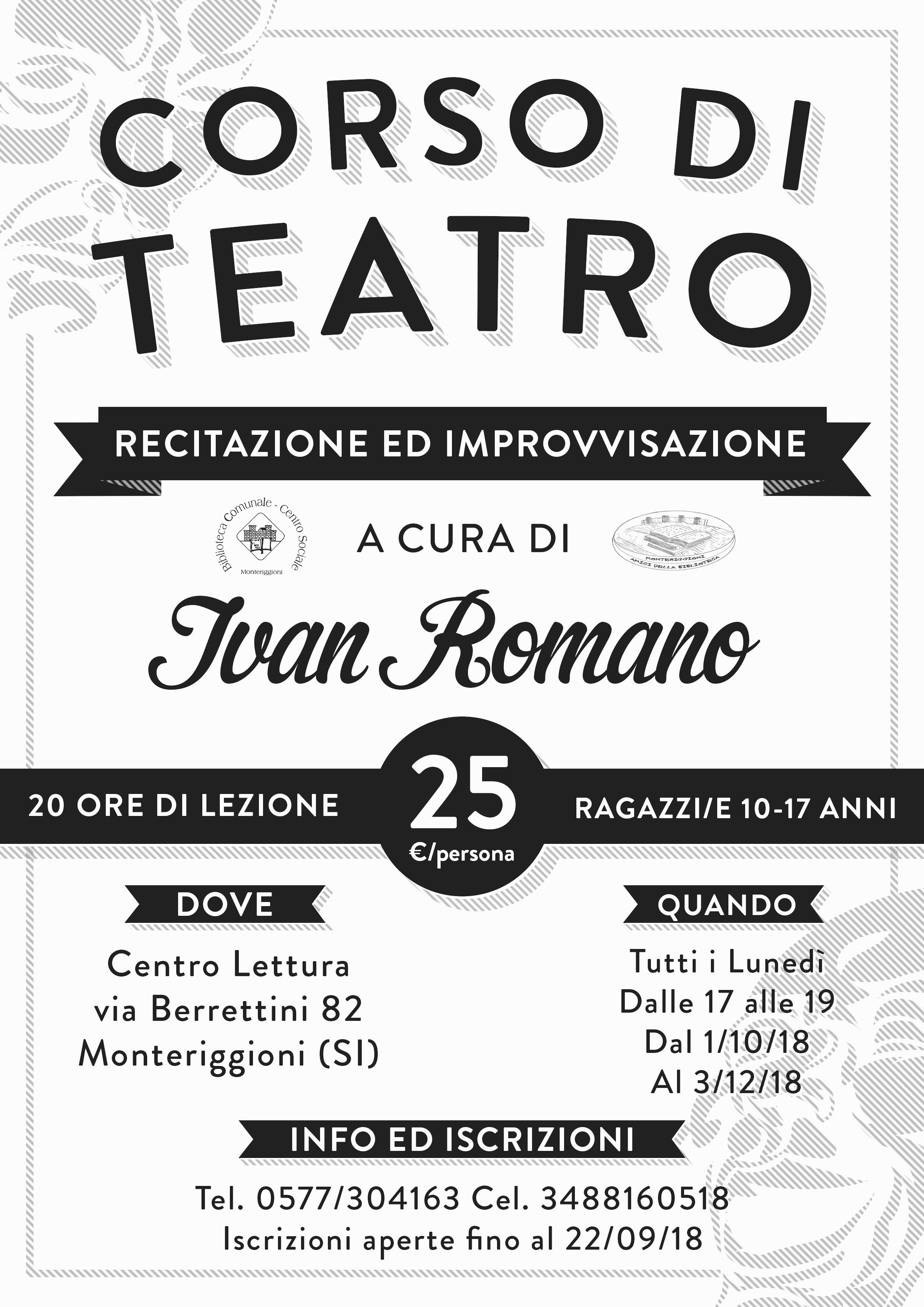 A partire dal 1 Ottobre 2018, presso il Centro Lettura di Via Berrettini a Castellina Scalo, sarà attivo un corso di teatro per ragazzi e adolescenti.