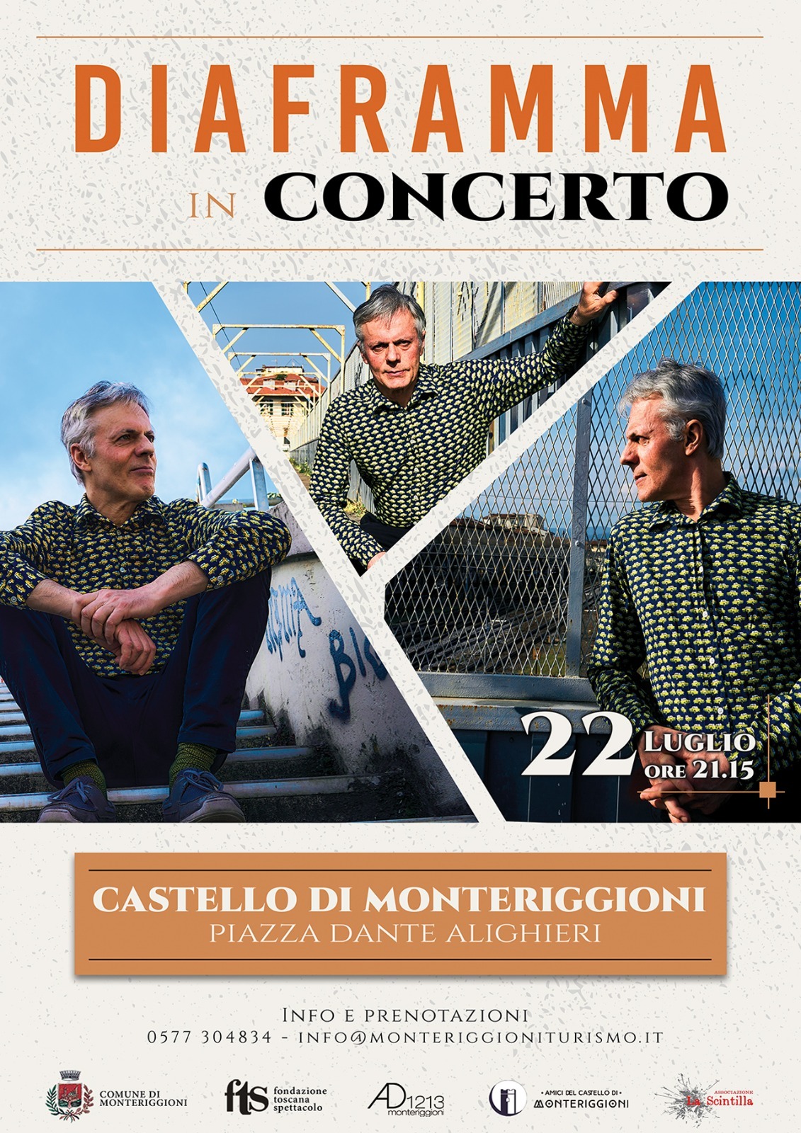 L’evento fa parte del cartellone eventi estivi promossi dal Comune di Monteriggioni, in collaborazione con Fondazione Toscana Spettacolo Onlus, Monteriggioni AD 1213, Associazione Amici del Castello di Monteriggioni, Associazione La Scintilla.
