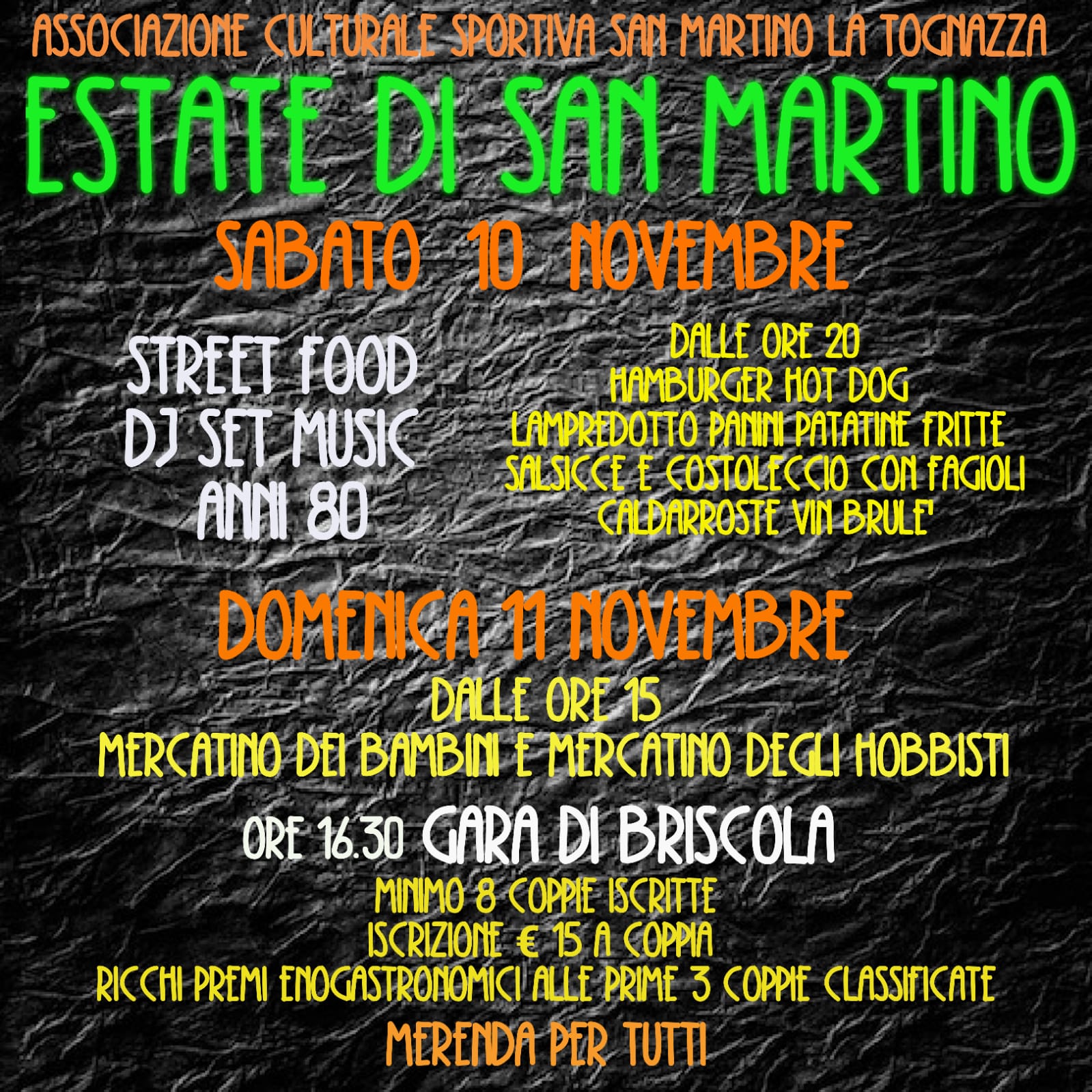 Nei giorni 10 e 11 Novembre l'associazione culturale sportiva San Martino-La Tognazza organizza "Estate di San Martino", con street food, musica, mercatino e gara di briscola.