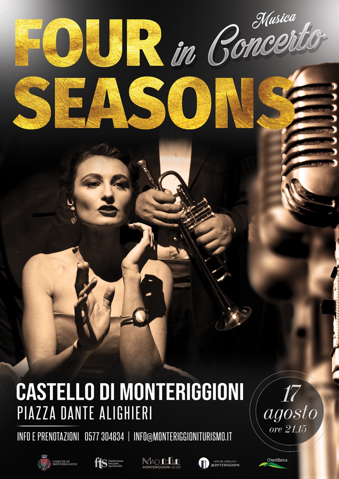 Sabato 17 agosto, ore 21:15, Castello di Monteriggioni in Piazza Dante Alighieri, tornano gli applauditissimi e raffinati Four Seasons per il loro concerto.