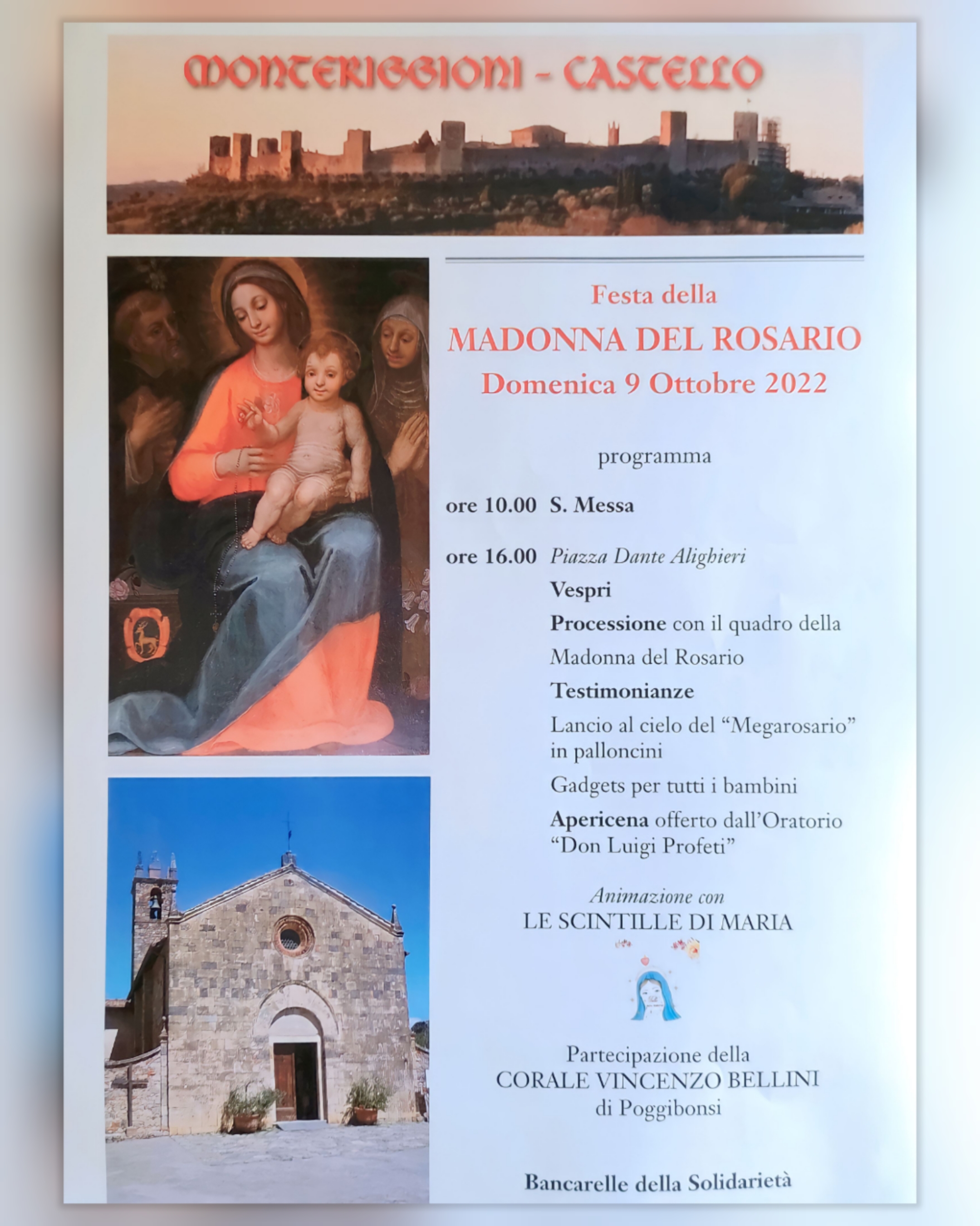 Domenica 9 a Ottobre, al castello di Monteriggioni (SI) si svolgerà la tradizionale Festa della Madonna del Rosario, raffigurata in un dipinto custodito all'interno della chiesa del borgo.