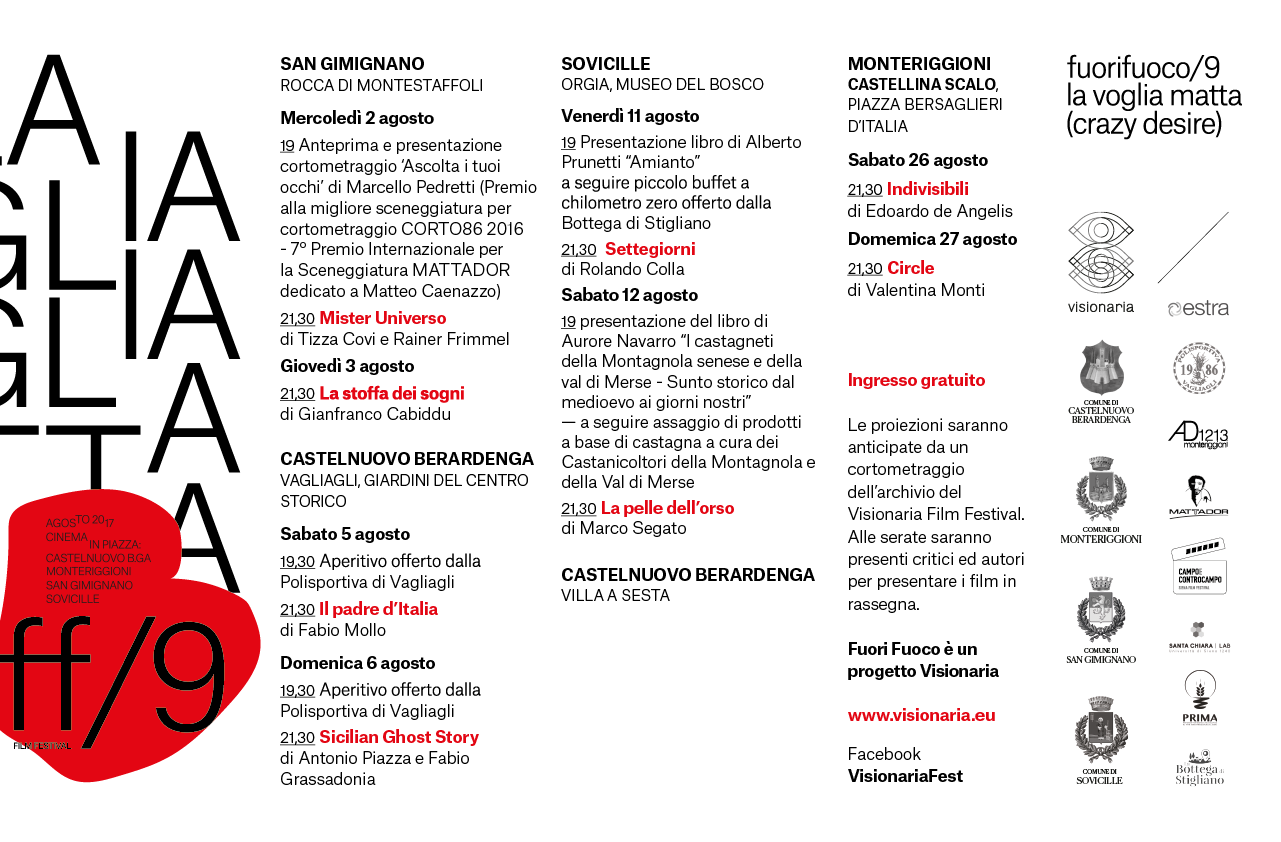 Visionaria Film Festival presenta il cinema italiano indipendente nella Provincia di Siena. I film saranno presentati dagli autori e dai critici.