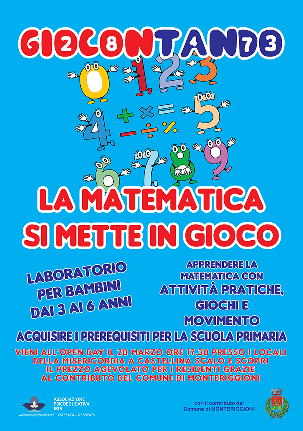 Il laboratorio ha l’obiettivo di facilitare l’acquisizione dei prerequisiti matematici per la scuola primaria attraverso un metodo intuitivo e vicino alla naturale modalità di apprendere dei bambini. Ci si propone di accompagnare lo sviluppo del pensiero logico-matematico attraverso giochi motori, attività pratiche e lavori collettivi di osservazione e riflessione.