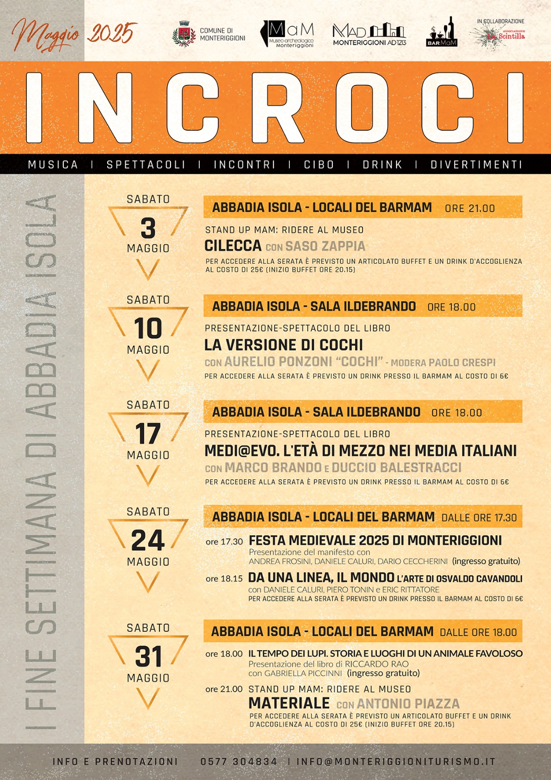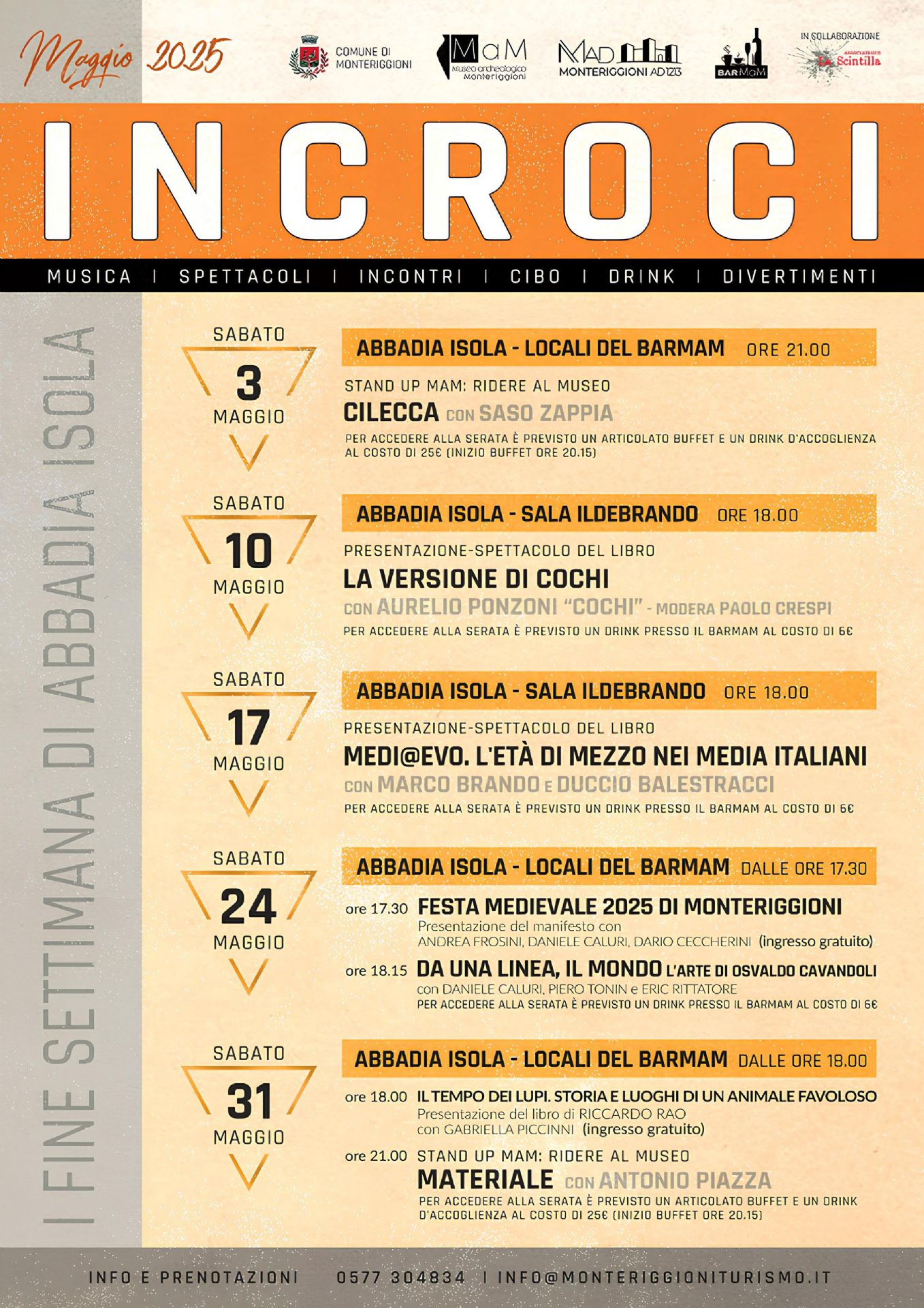 Prosegue anche a maggio la rassegna "INCROCI", ciclo di eventi promosso dall'amministrazione comunale di Monteriggioni.