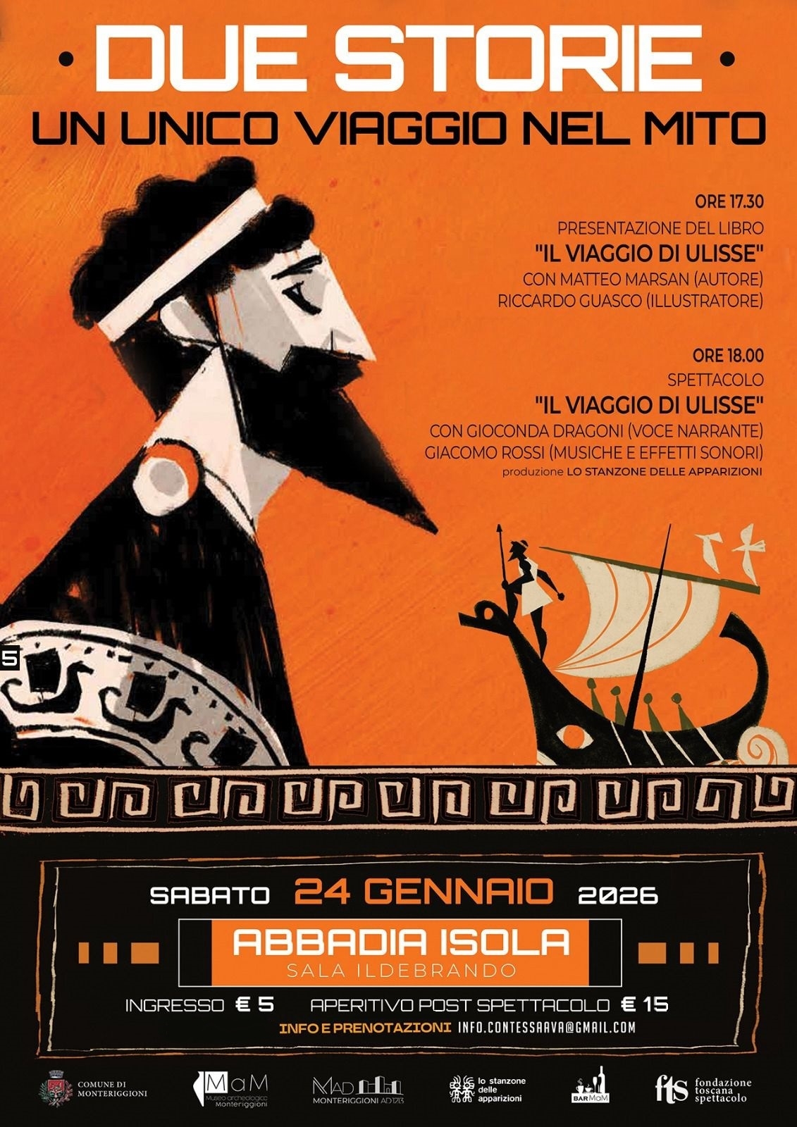 La rassegna “Incroci”, organizzata da Comune di Monteriggioni, Toscana Fondazione Spettacolo, Monteriggioni AD 1213, torna ad Abbadia Isola con un secondo appuntamento dedicato a uno dei racconti più affascinanti di sempre: il viaggio di Ulisse.