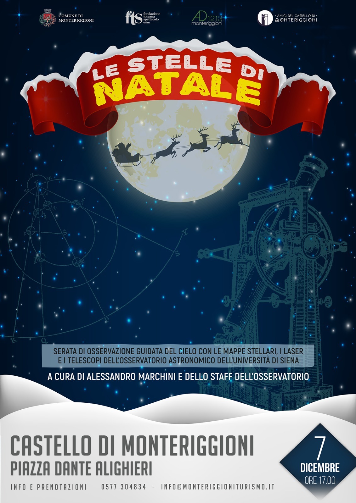 L’iniziativa fa parte degli eventi invernali promossi dal comune di Monteriggioni e organizzati in collaborazione con Fondazione Toscana Spettacolo, Monteriggioni AD 1213, Ass. Gli Amici del Castello, Emergency, CAI – Sezione di Siena, Ass. Culturale L'Agresto