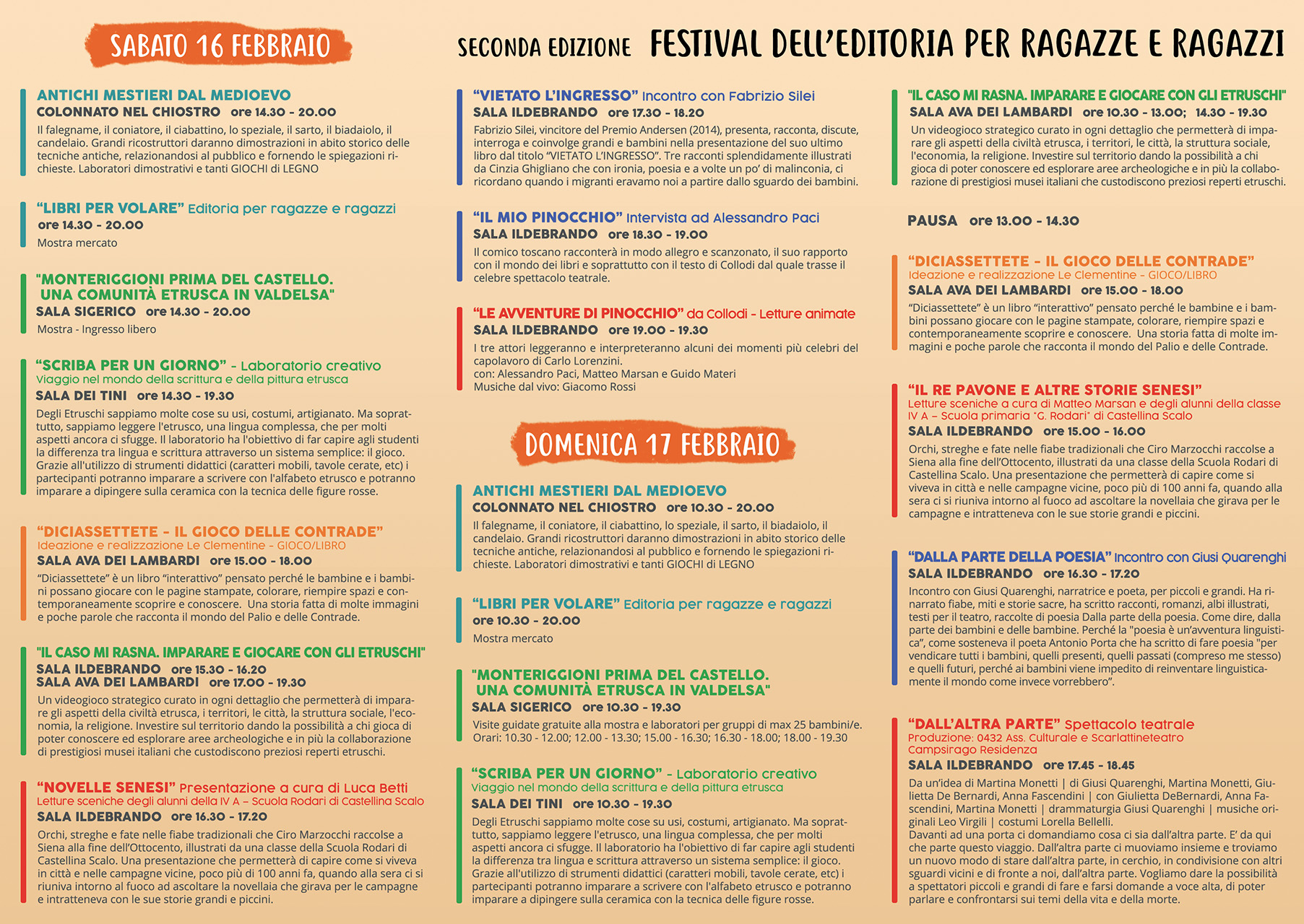 Nei giorni 16 e 17 Febbraio 2019, presso il Complesso monumentale di Abbadia Isola (Monteriggioni-SI), si svolgerà la seconda edizione di “Libri per volare-Festival dell’editoria per ragazzi e ragazze.