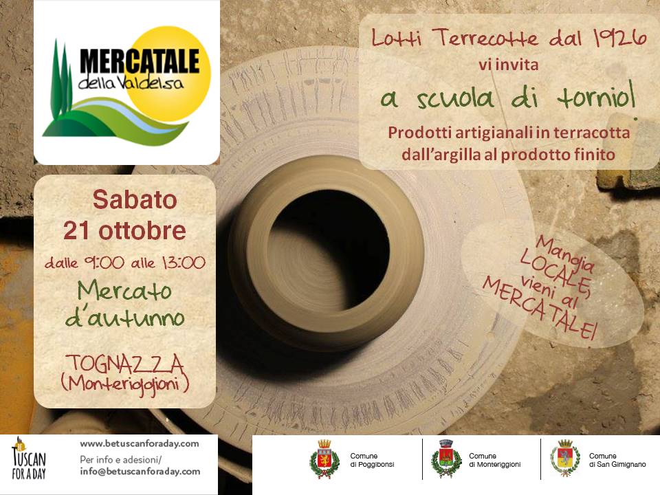 Dalle 9 alle 13, presso la Casa dell'Acqua in loc. Tognazza (Monteriggioni-SI). mercato con prodotti locali come vino, olio, formaggi, frutta, verdura, miele e molto altro.