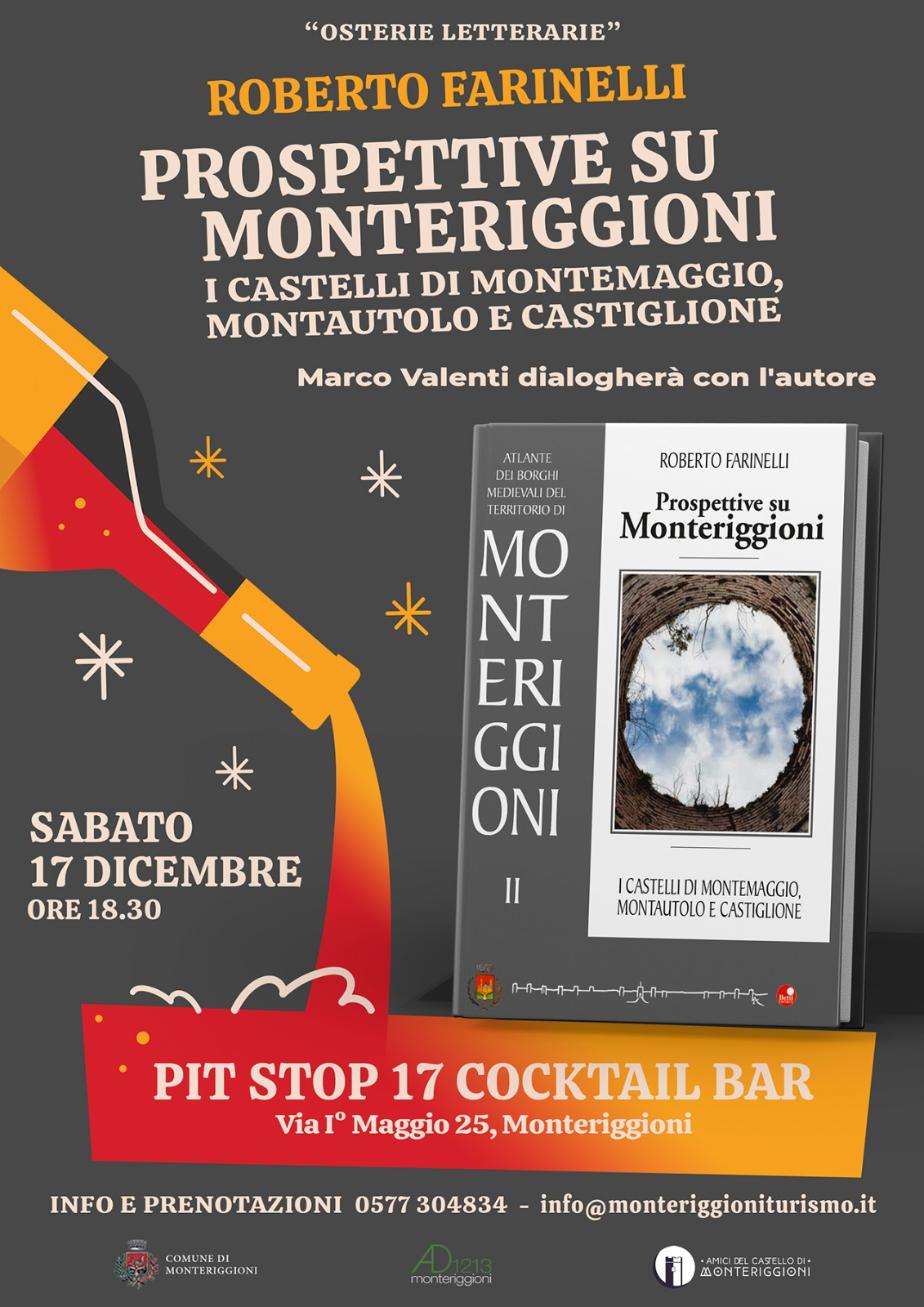 Sabato 17 dicembre, alle 17,30 si terrà la terza Osteria Letteraria di queste settimane pre-natalizie, nelle eleganti sale del Pit Stop 17 Cocktail Bar di Luigi Cagnazzo in Via 1° Maggio 25 (Castello di Monteriggioni).