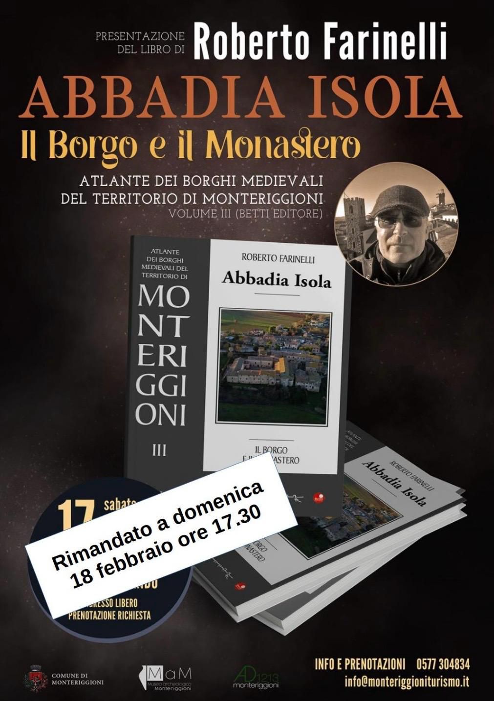 Conferenze al Museo, 18 Febbraio 2024, Presentazione libro di Roberto Farinelli: “Abbadia Isola. Il borgo e il monastero”, Atlante dei borghi medievali del territorio di Monteriggioni, volume III (Betti editore), ore 17:30, MaM - Museo Archeologico di Monteriggioni , Abbadia Isola, Sala Ildebrando.