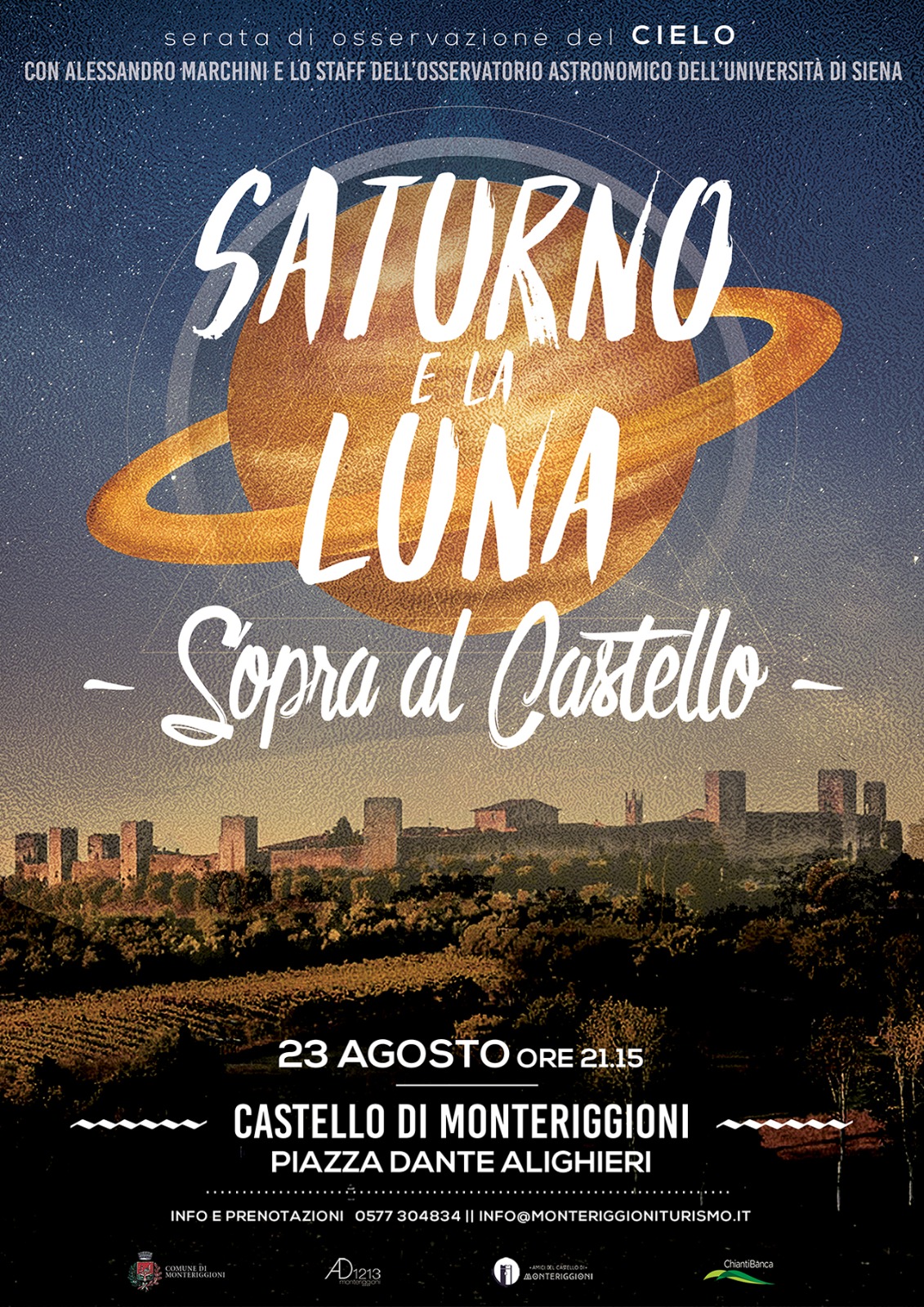 Si ripropone una collaborazione ormai consolidata con il queste eccellenze dell’ateneo senese, capaci di meravigliare e coinvolgere il pubblico con le loro spiegazioni, i telescopi e le mappe del cielo. In un linguaggio semplice ed estremamente comunicativo i due grandi pianeti non avranno segreti per alcuno dei partecipanti.