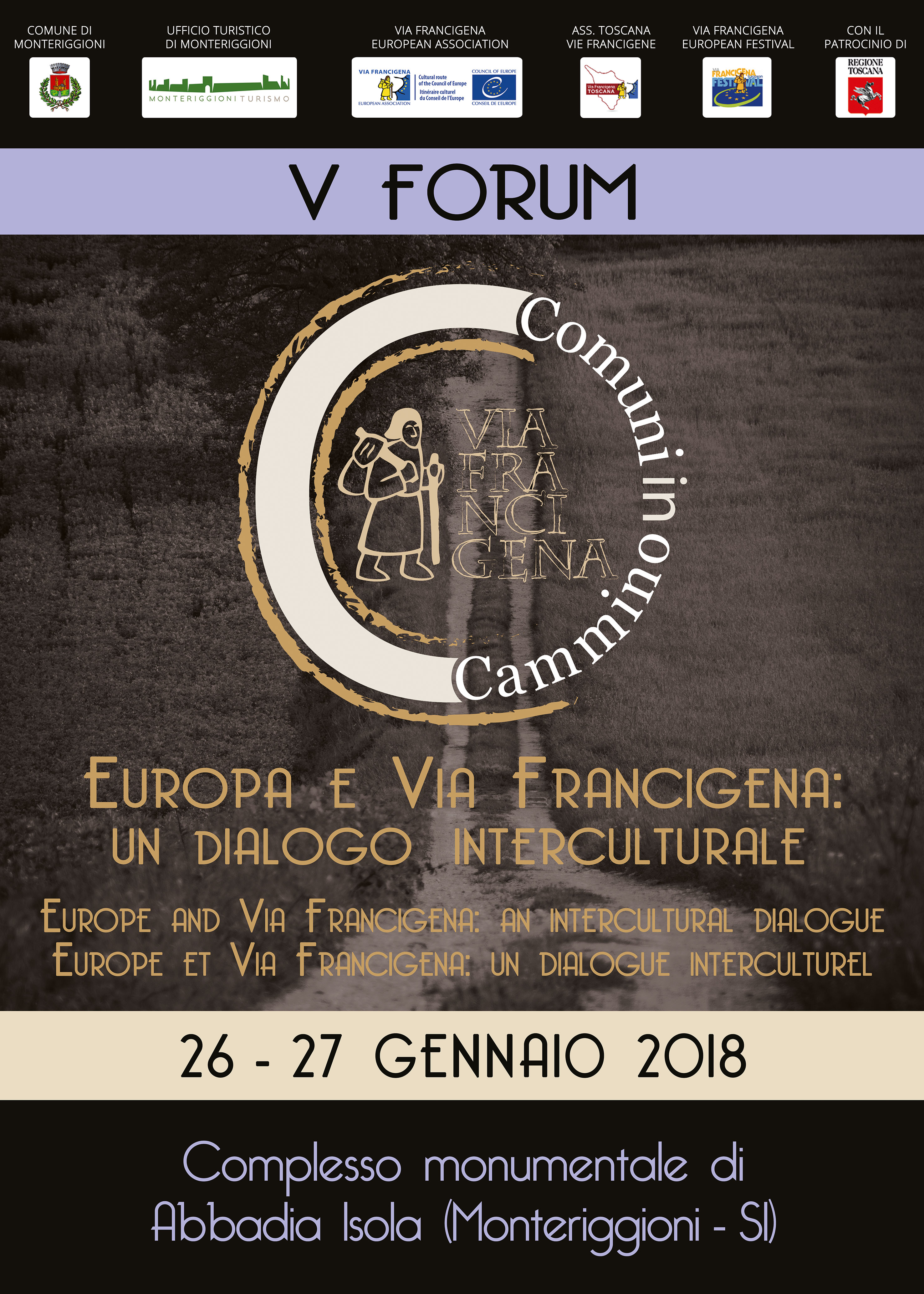 Ritorna il 26 e 27 gennaio l'appuntamento annuale con il Forum"Comuni in Cammino" di Monteriggioni, giunto nel 2018 alla sua V edizione e dedicato a "Europa e Via Francigena: un Dialogo Interculturale".